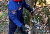 Ular Sanca Muncul di Permukiman Gang Resak Kilometer 2, Damkar Tanjungpinang Langsung Evakuasi