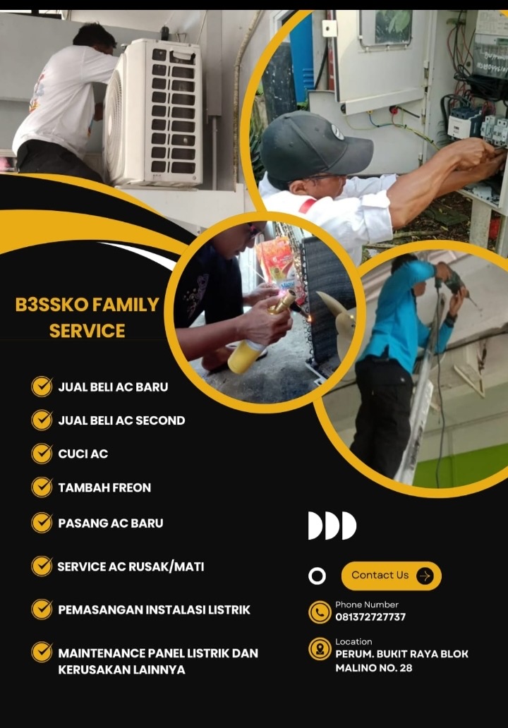 Dengan berbagai layanan profesional yang ditawarkan, B3SSKO FAMILY SERVICE siap membantu masyarakat dalam merawat dan memperbaiki AC serta sistem kelistrikan mereka.