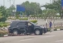 Toyota Fortuner Hitam Tabrak Pagar Pembatas di Jalan Coastal Area Karimun