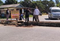 Ikatan Pemuda Tangguh Kampung Jawa Pasang Spanduk Imbauan Kurangi Kecepatan di Persimpangan Jalan Lintas Timur