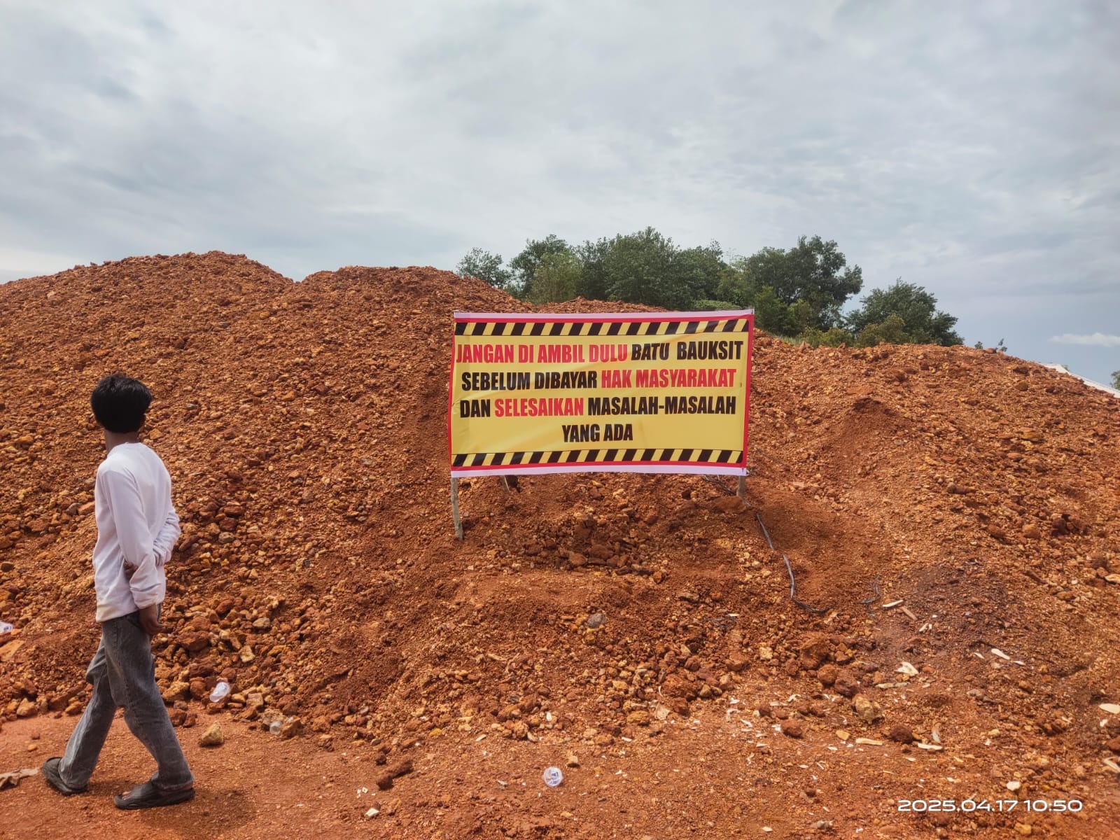 “Satu batu pun tidak boleh mereka angkut sebelum hak kami dibayar. Tugboat yang masih parkir segera keluar. Kalau masih mengingkari janji, jangan salahkan kami. Tugboat itu bisa kami bakar!”