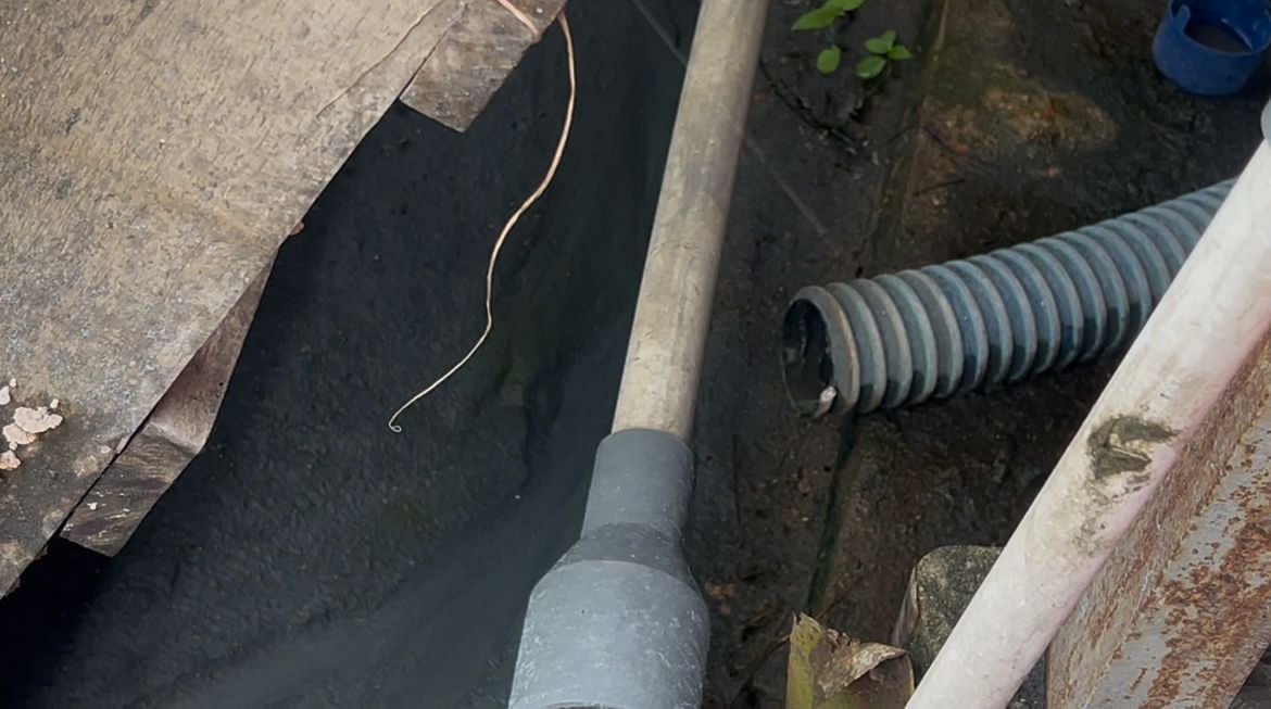 Limbah cair terlihat mengalir ke parit lingkungan, dan bau menyengat tercium hingga radius beberapa meter dari lokasi.