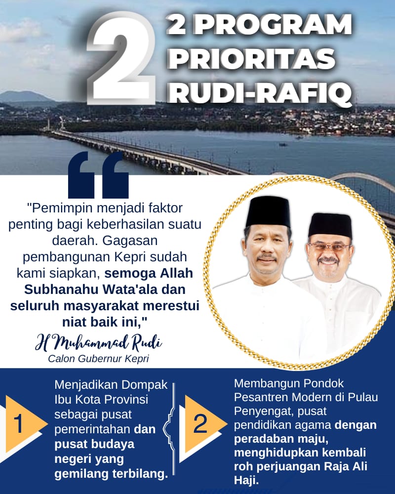 Ulasfakta.co – H Muhammad Rudi (HMR), calon Gubernur Kepulauan Riau (Kepri), memiliki visi besar untuk menjadikan Dompak sebagai pusat pemerintahan dan budaya yang memancarkan kemajuan Kepri.