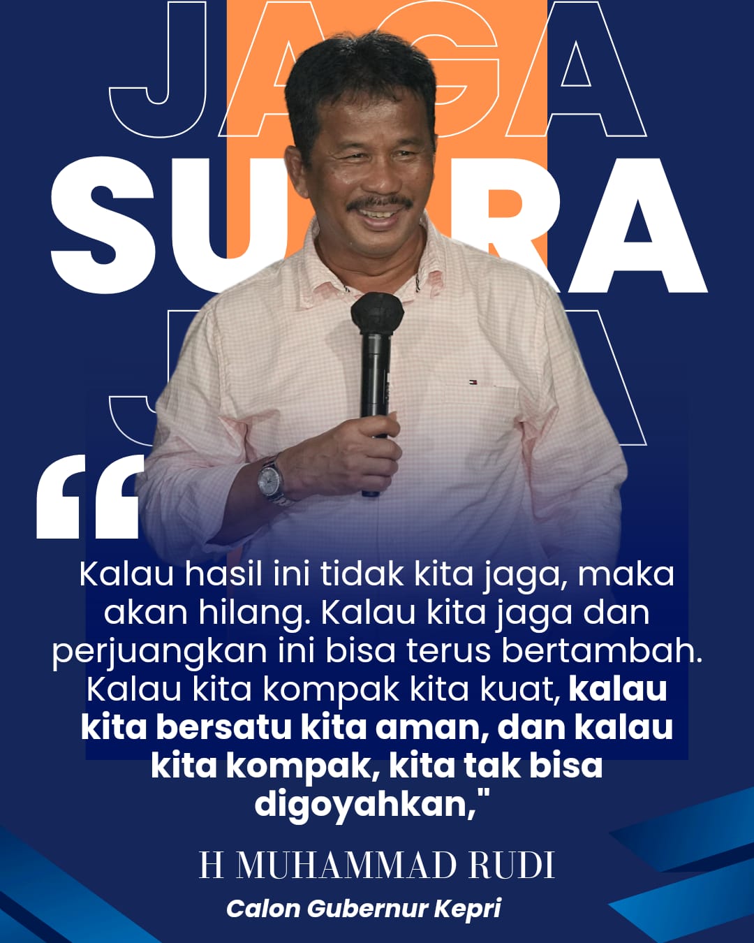 “Pembangunan harus merata. Bukan hanya satu daerah saja yang dibangun. Seluruh rakyat Kepri harus dilayani, dan ekonomi harus dibangkitkan,” ujarnya.
