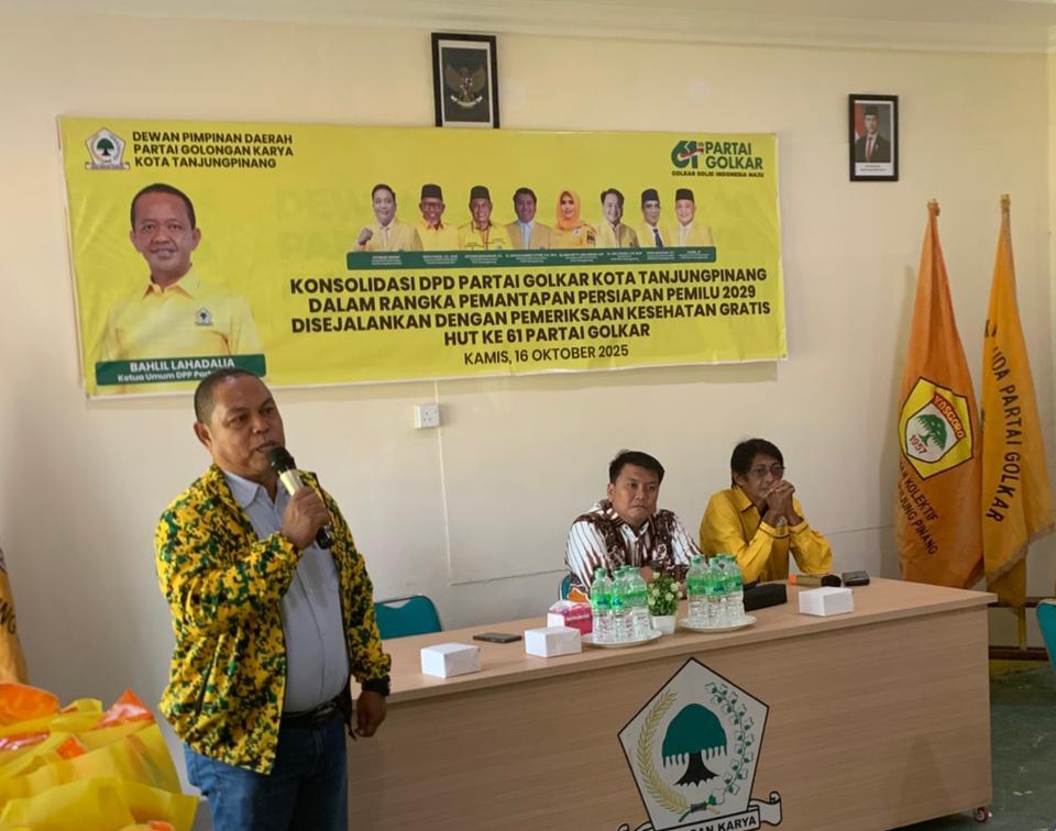 “Kegiatan pertama berupa bakti sosial, yaitu pengobatan gratis dan pembagian sembako pada Kamis ini. Selanjutnya, Senin 20 Oktober 2025, kami akan berziarah ke makam tokoh sesepuh partai sekaligus membagikan sembako,” ujar Untung di Kantor DPD II Golkar Tanjungpinang, Jalan Tugu Pahlawan, Kamis pagi, 16 Oktober 2025.