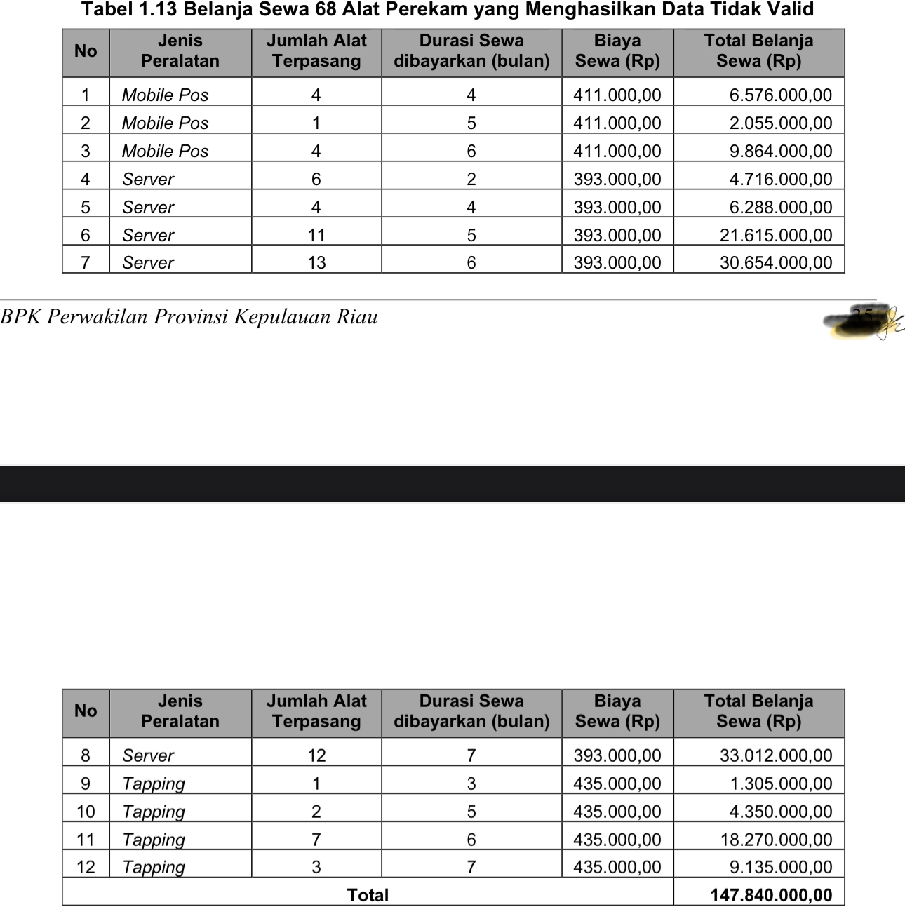 Sehingga hal tersebut mengakibatkan Realisasi belanja sewa 68 alat perekam yang tidak menghasilkan data yang valid sebesar Rp147.840.000,00 pada Bapenda.
