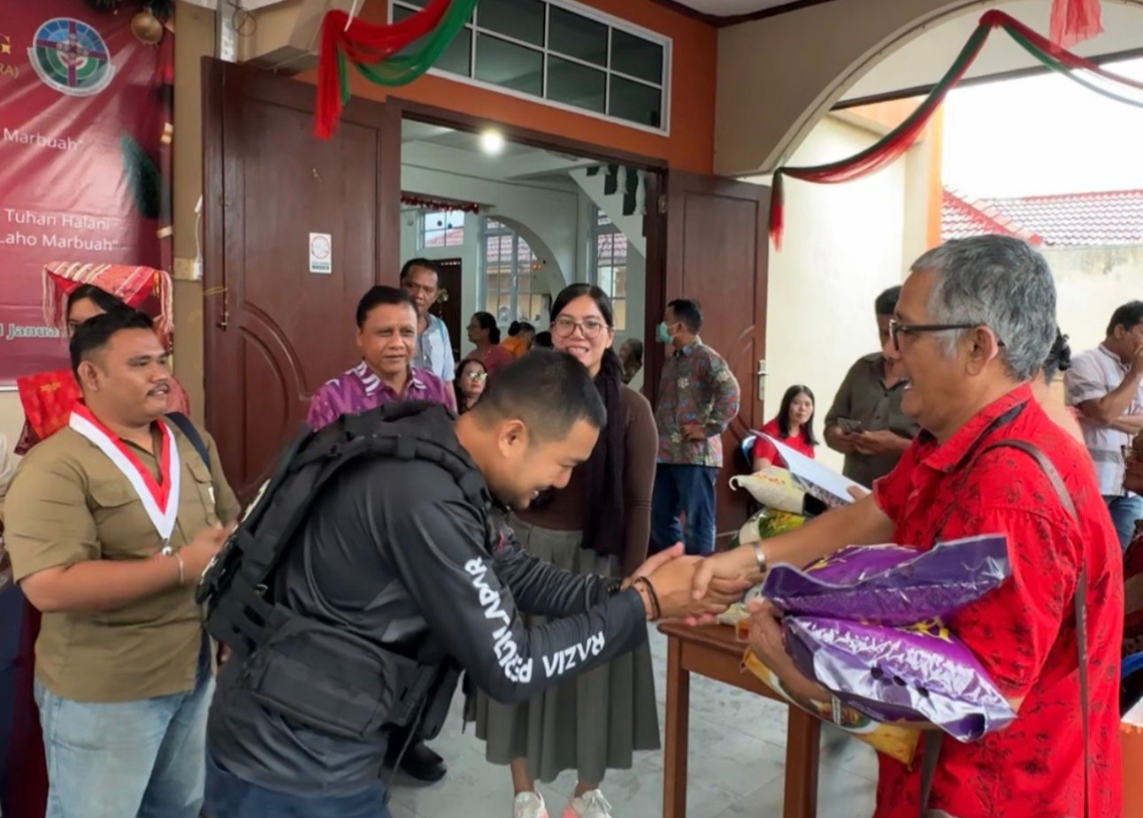 Aksi tersebut berlangsung di halaman Gereja GKPS Sei Jang, Kecamatan Bukit Bestari, Kota Tanjungpinang, Ahad, 28 Desember 2025.