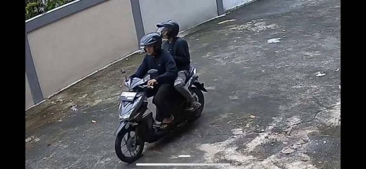 Dua pria dengan ciri-ciri mengenakan pakaian gelap dan helm, serta mengendarai motor matic berwarna abu-abu, diduga sebagai pelaku. Salah satu pelaku tampak mengenakan celana panjang. Sayangnya, nomor plat kendaraan tidak tertangkap jelas dalam dokumentasi yang beredar.