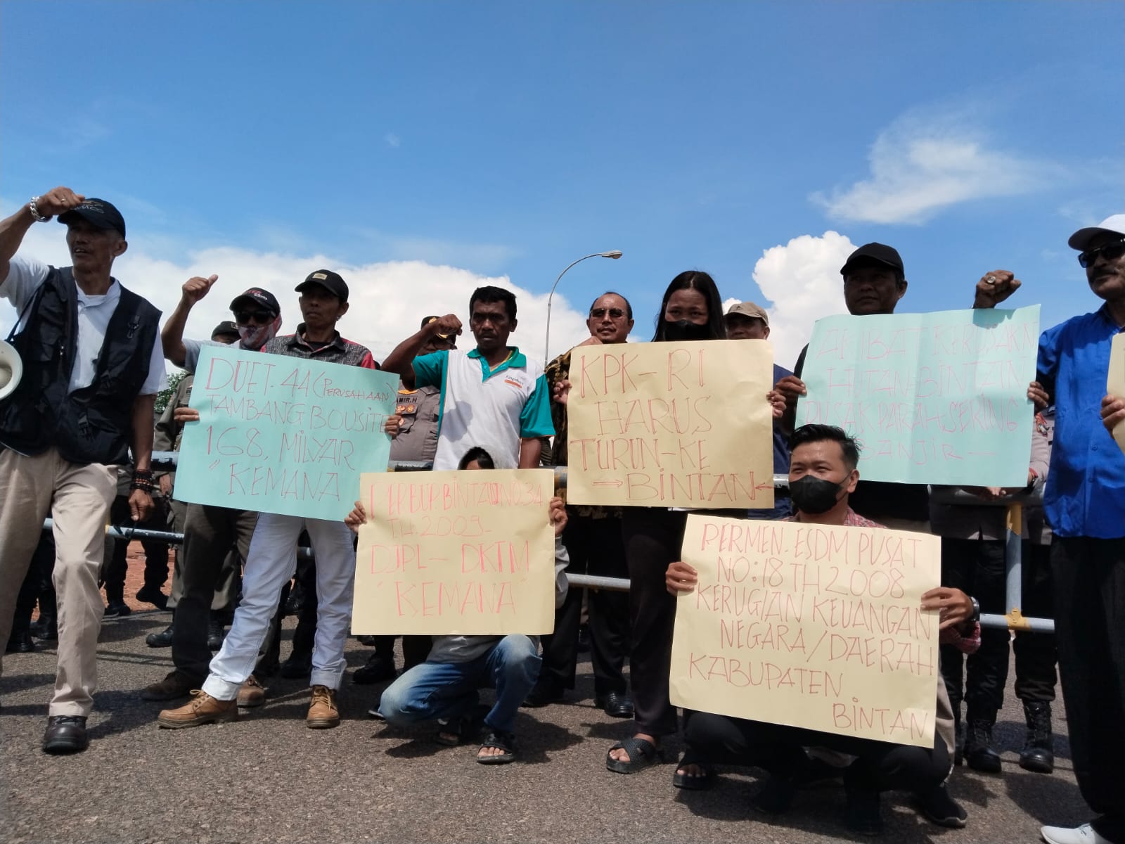 Ulasfakta.co – Puluhan massa yang tergabung dalam Aliansi Aktivis Bintan Menggugat berunjuk rasa di depan Kantor Gubernur Kepri di Pulau Dompak, Kamis (10/10) pagi.