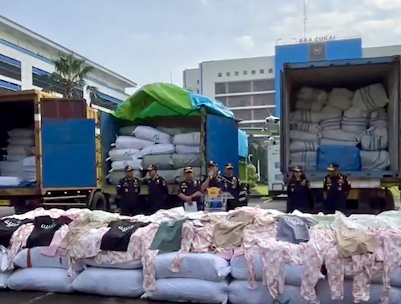 Dokumen manifes mencantumkan keterangan “barang campuran” dan “sajadah”. Namun saat dibongkar di gudang Muara Karang, Jakarta Utara, dua kontainer justru berisi pakaian jadi eks impor ilegal, sementara satu kontainer lain membawa mesin pembuatan rokok.