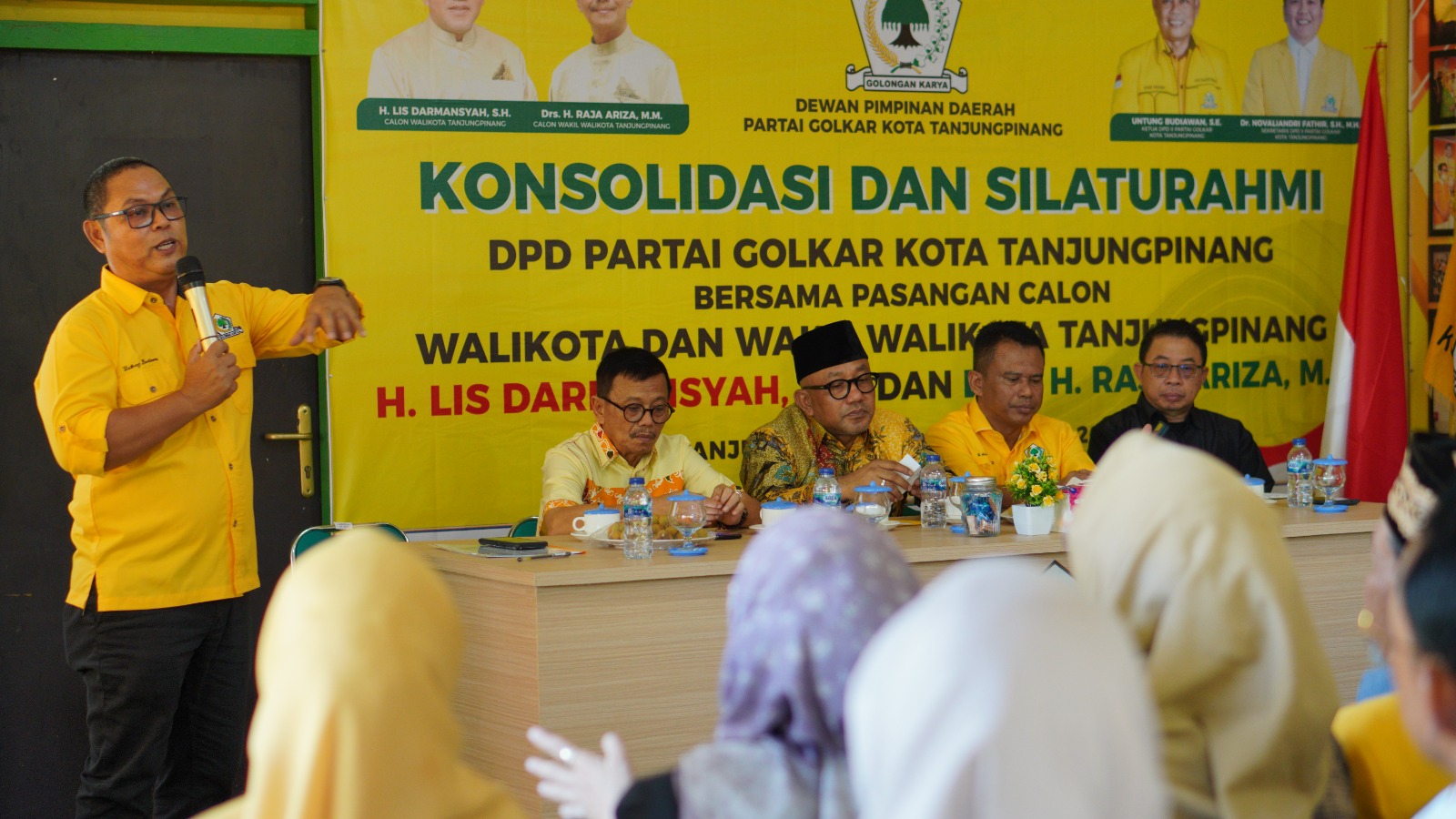 Ulasfakta.co – DPD Partai Golkar Kota Tanjungpinang menggelar konsolidasi dan silaturahmi di sekretariat partai bersama pasangan calon Wali Kota dan Wakil Wali Kota Tanjungpinang, Lis Darmansyah-Raja Ariza, Jalan Tugu Pahlawan, Rabu pagi (18/9).