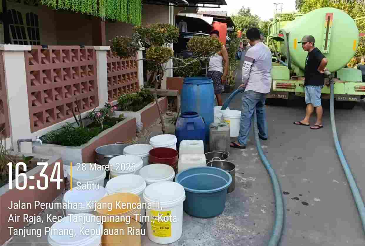 Penyaluran dilakukan pada Sabtu (28/03/2026) melalui tim distribusi air bersih Pemko Tanjungpinang yang menyasar titik-titik permukiman terdampak.