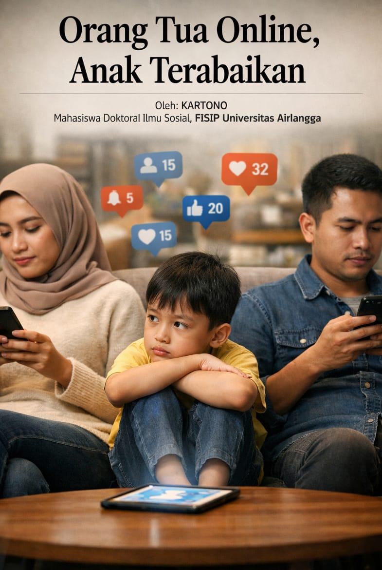 Di banyak rumah hari ini, pemandangan serupa berulang: orang tua dan anak duduk berdekatan, tetapi masing-masing sibuk menatap gawai. Hampir tak ada percakapan, apalagi dialog mendalam. Yang tersisa hanya kehadiran fisik tanpa keterlibatan emosional. Fenomena ini menandai pola pengasuhan baru, orang tua selalu daring, sementara anak justru terabaikan.