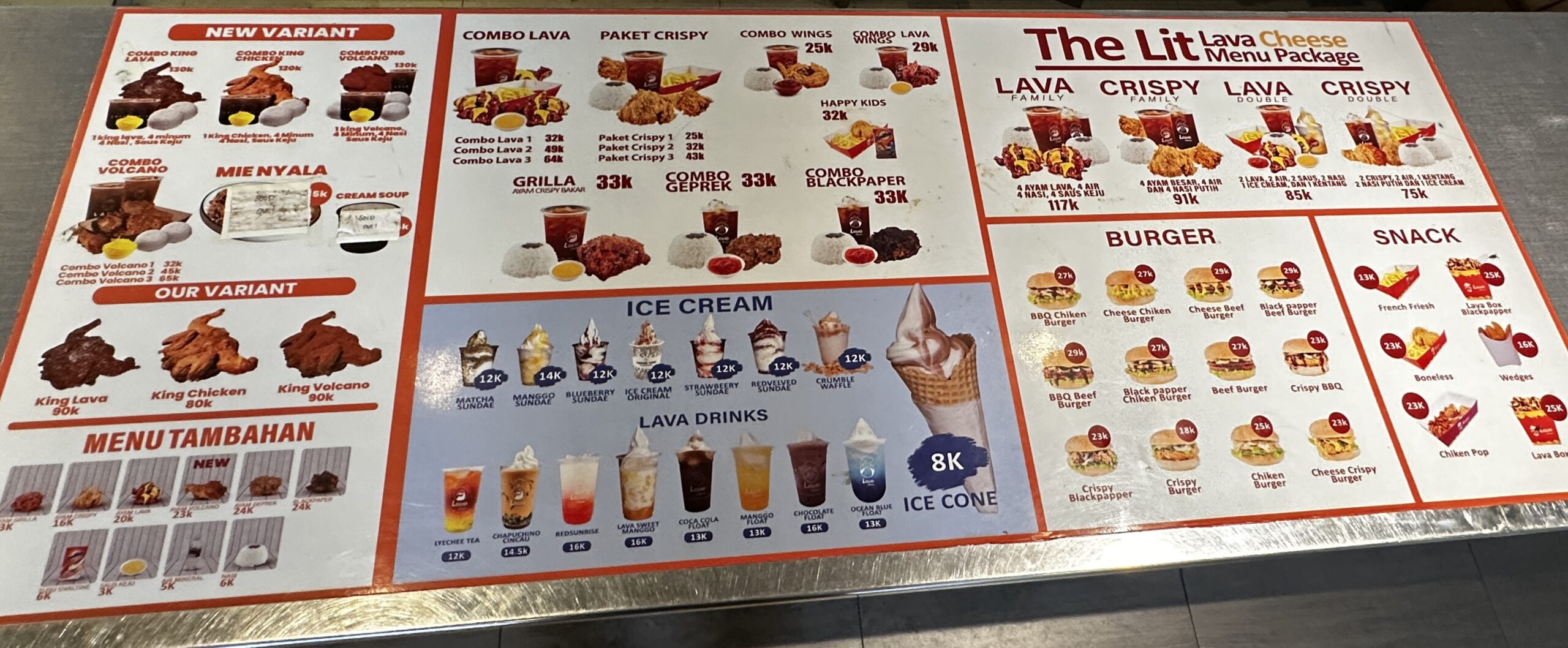 • ✅ Combo King Lava (130K) – 1 King Lava + 4 Minuman + 4 Nasi + Saus Keju