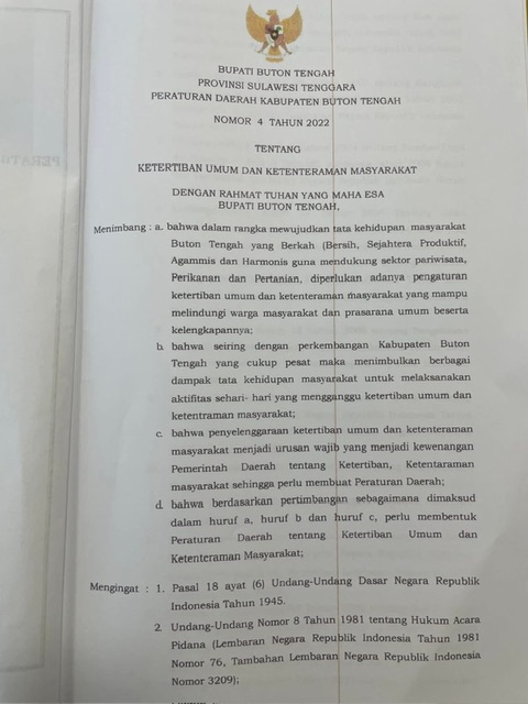 Ia menjelaskan, setelah mencermati secara detail Peraturan Daerah Kabupaten Buton Tengah Nomor 4 Tahun 2022 tentang Ketertiban Umum dan Ketenteraman Masyarakat, ketentuan mengenai izin tempat hiburan dan keramaian sebenarnya sudah diatur secara tegas. Karena itu, pemerintah daerah akan menjadikan regulasi tersebut sebagai dasar hukum dalam melakukan pengawasan sekaligus penindakan di lapangan.