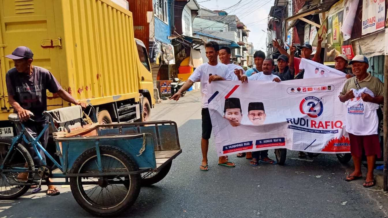 Namun, ada yang menarik perhatian dari para penarik becak tersebut, mereka rata-rata mengenakan kaos pasangan calon (Paslon) Gubernur dan Wakil Gubernur Kepulauan Riau (Kepri) nomor urut 2, H. Muhammad Rudi – Aunur Rafiq (Rudi-Rafiq).