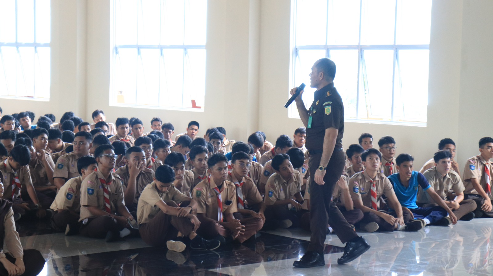 Tim Jaksa Masuk Sekolah yang terdiri dari Kasi Penerangan Hukum, Yusnar Yusuf, dan Kasi Teknologi Informasi dan Produksi Intelijen, Adityo Utomo, menyampaikan materi terkait narkoba dan bullying.