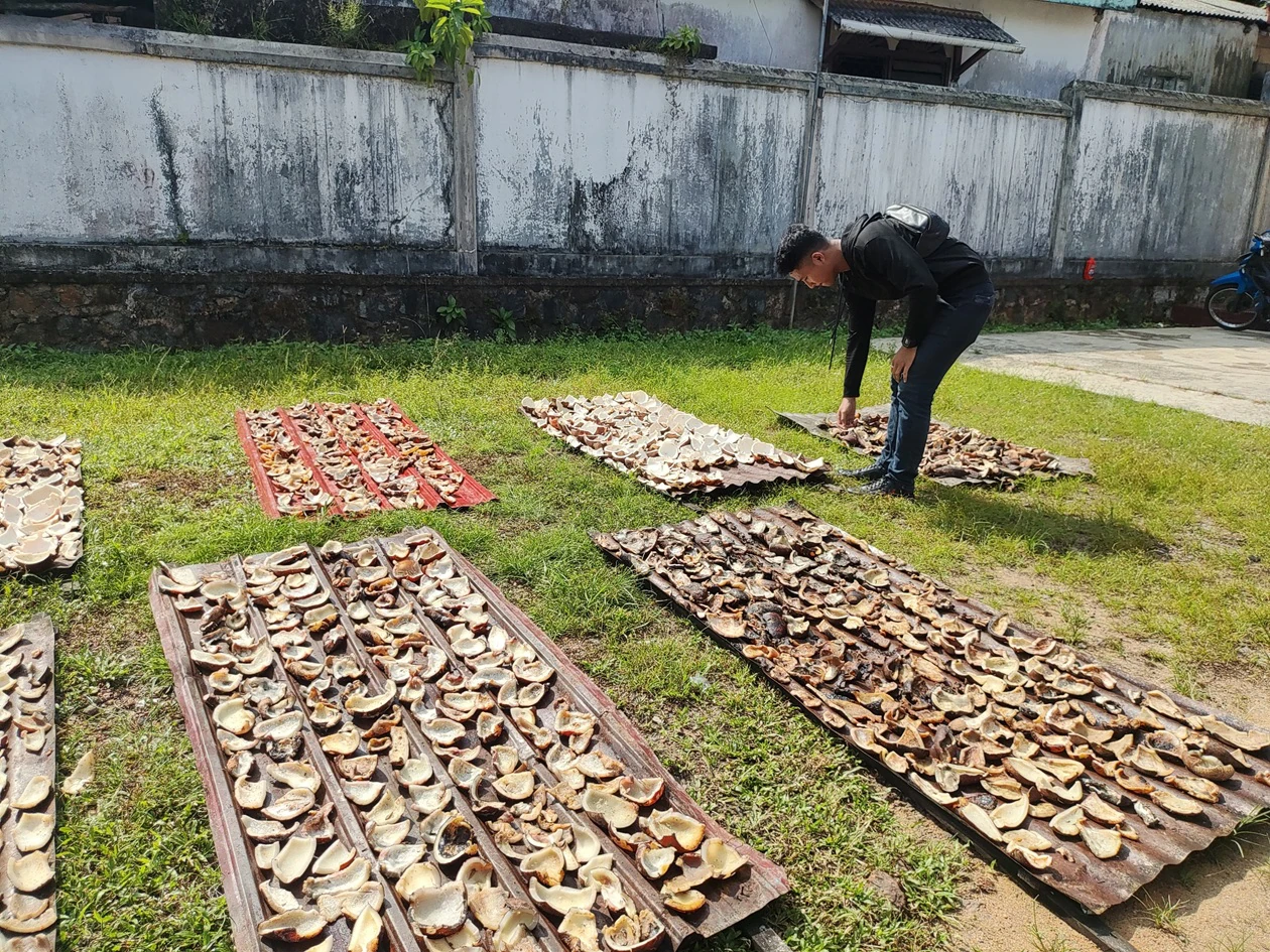 “Kami menjemur daging kelapa yang busuk di bawah sinar matahari sampai benar-benar kering sehingga bisa menjadi kopra,” jelasnya.