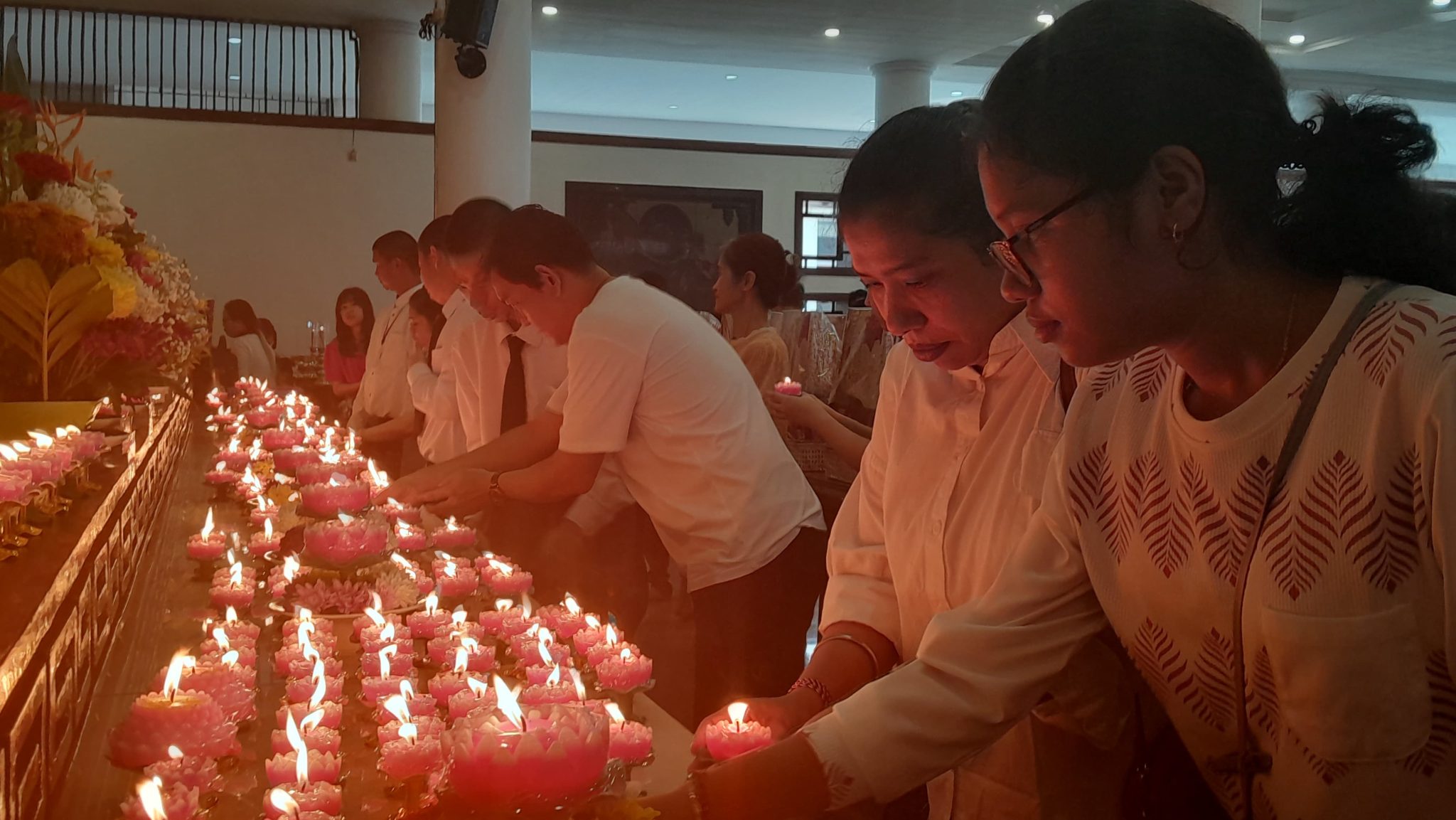 Ritual persembahan lilin teratai juga menjadi momen yang sangat berkesan. Lilin berbentuk bunga teratai ini melambangkan cahaya dan kebangkitan spiritual. Menurut Liyas, setiap orang seharusnya menjadi sumber cahaya bagi sesama.