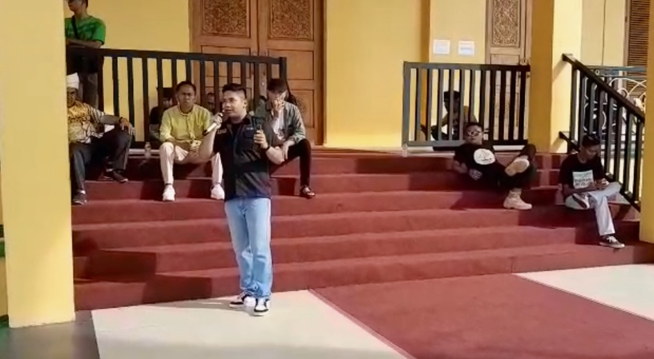 Tanjungpinang — Ketua Jaringan Pengawas Kebijakan Pemerintah (JPKP) Provinsi Kepulauan Riau, Adiya Prama Rivaldi, melakukan orasi di Gedung Lembaga Adat Melayu (LAM) Kepulauan Riau, menanggapi polemik yang menyeret nama Endipat Wijaya, anggota DPR RI daerah pemilihan Kepulauan Riau, pada Sabtu, (13/12).