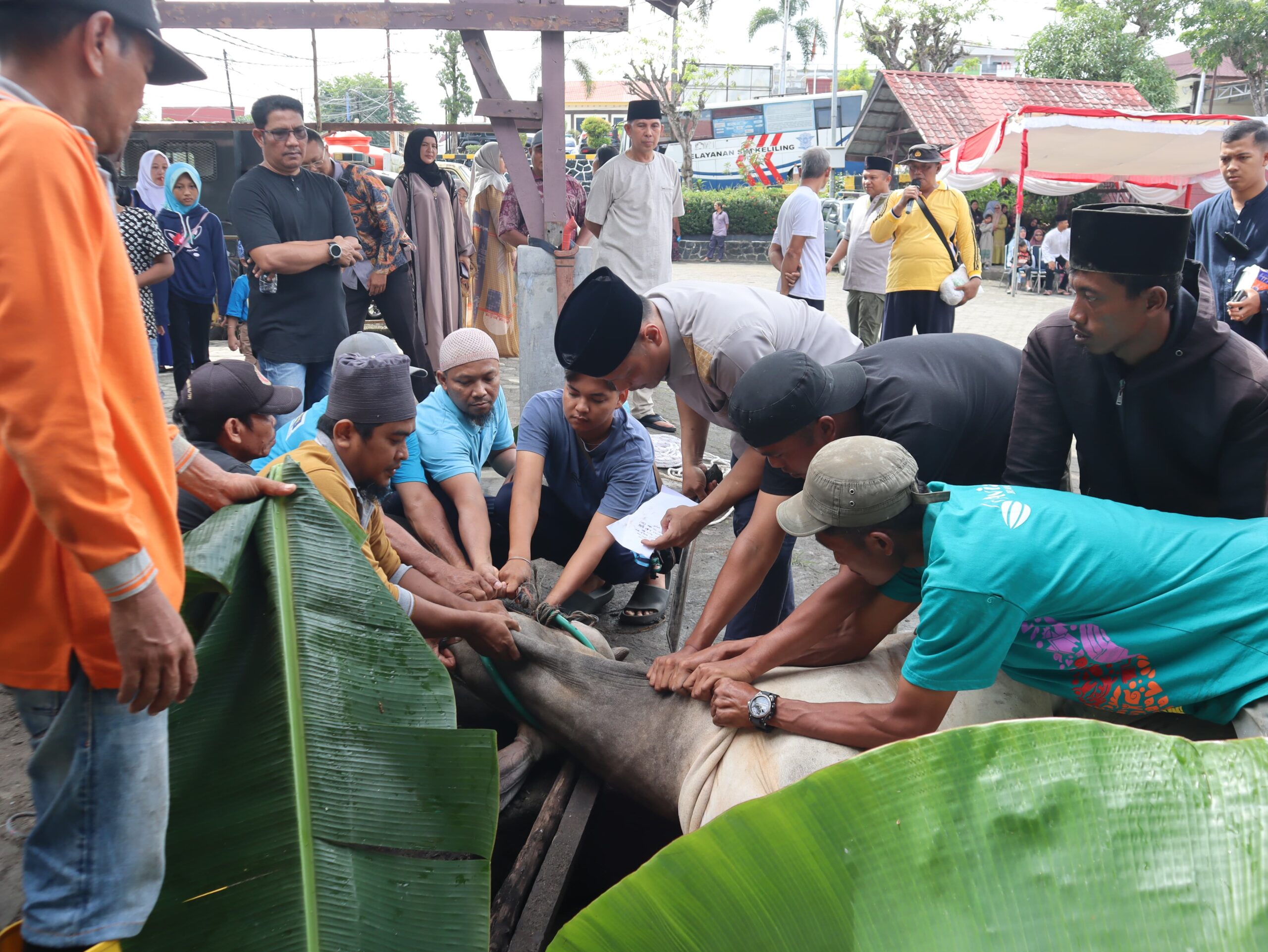 Kapolresta Tanjungpinang, Kombes Pol Hamam Wahyudi didampingi pejabat utama (PJU) Polresta Tanjungpinang serta Wali Kota Tanjungpinang, Lis Darmansyah, turut hadir menyaksikan langsung proses penyembelihan.