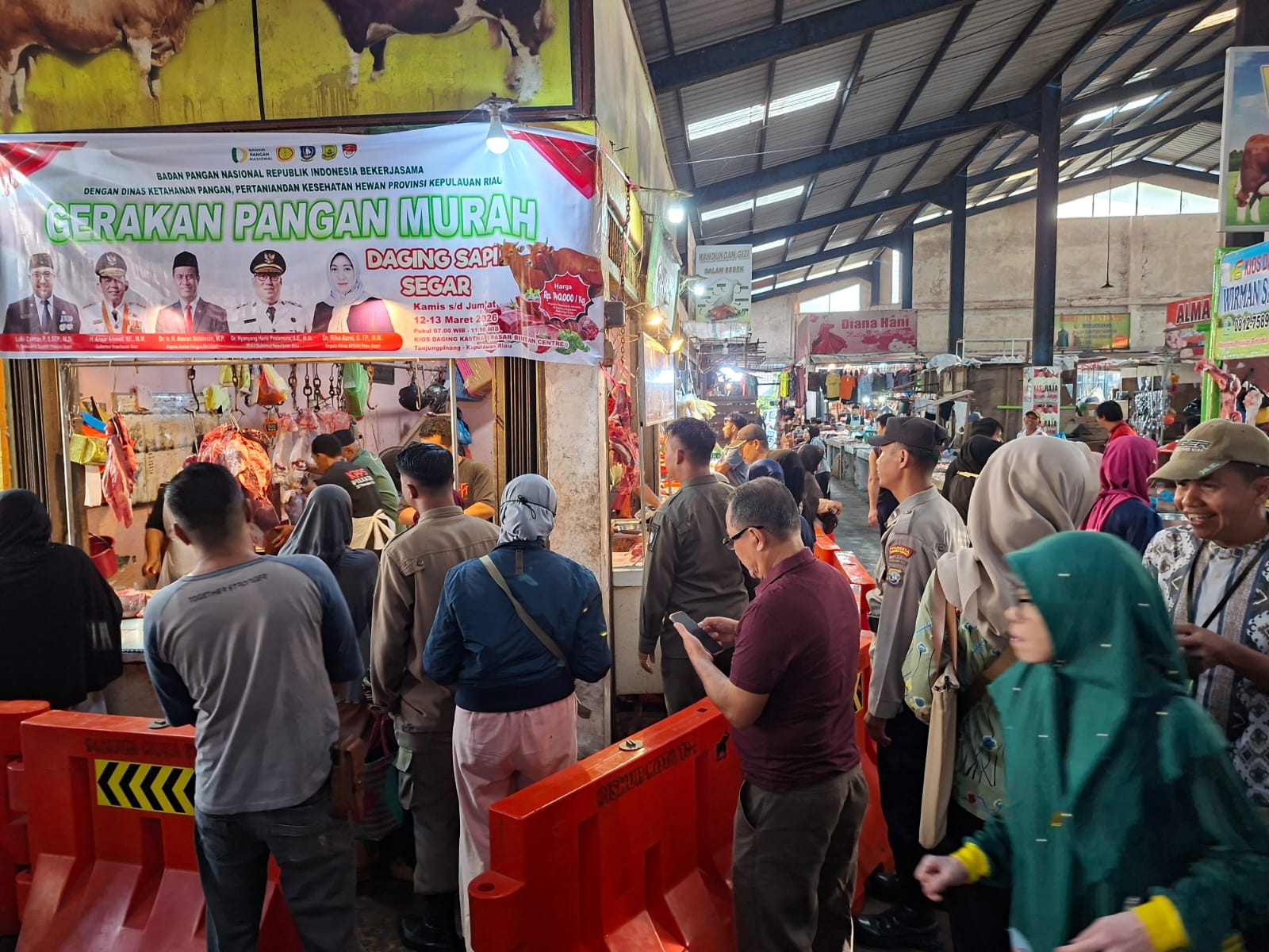 Tanjungpinang – Ratusan warga memadati kegiatan Gerakan Pangan Murah daging sapi segar yang digelar pemerintah dengan harga Rp140.000 per kilogram, lebih murah dibandingkan harga pasar menjelang Hari Raya Idul Fitri 1447 Hijriah.