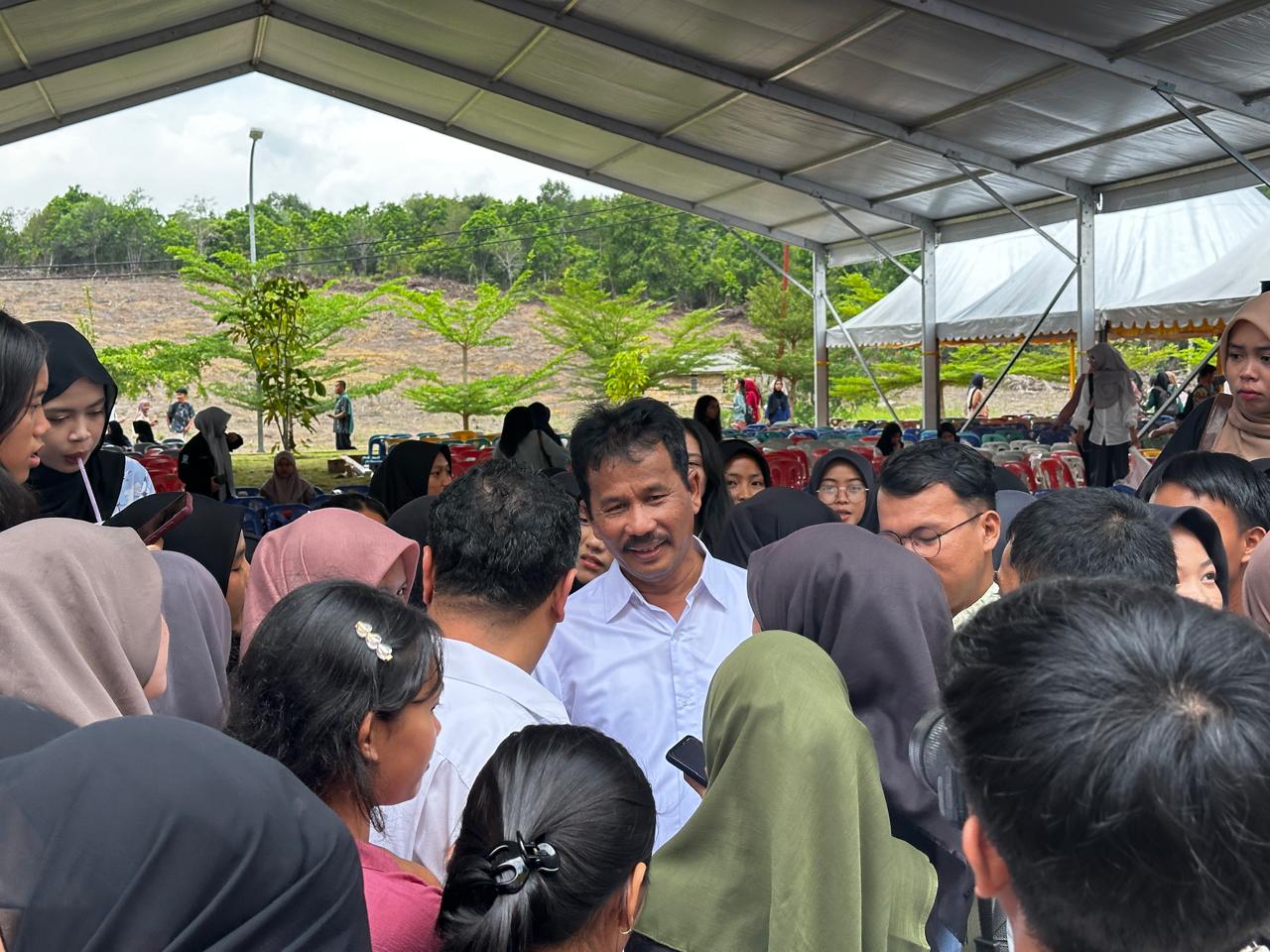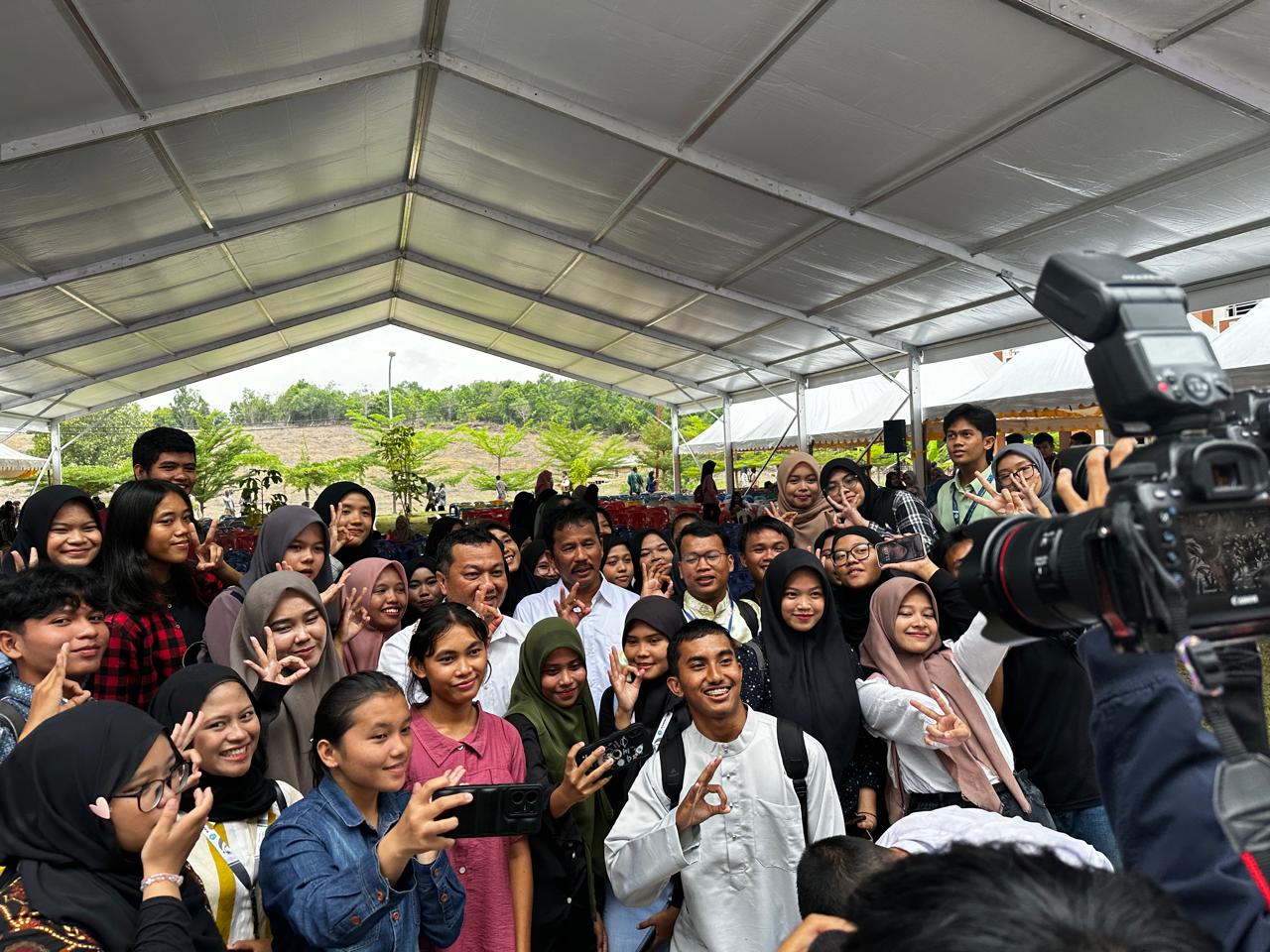 Rudi dikerumuni mahasiswa yang ingin berfoto dan menyampaikan apresiasi atas keberhasilannya membangun Batam menjadi kota metropolitan.