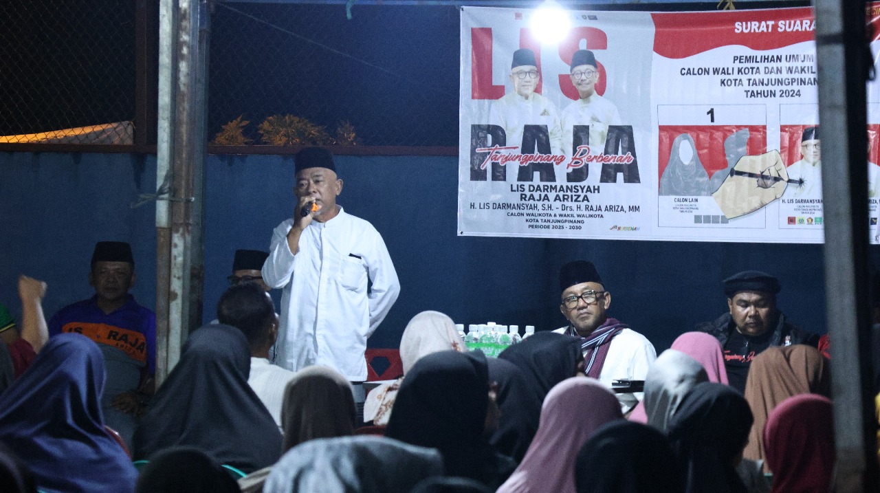 Ulasfakta.co – Kampanye pasangan calon Wali Kota dan Wakil Wali Kota Tanjungpinang, Lis-Raja di Kampung Sidojadi pada Jumat (15/11/2024) malam berlangsung meriah lebih dari 400 warga hadir.