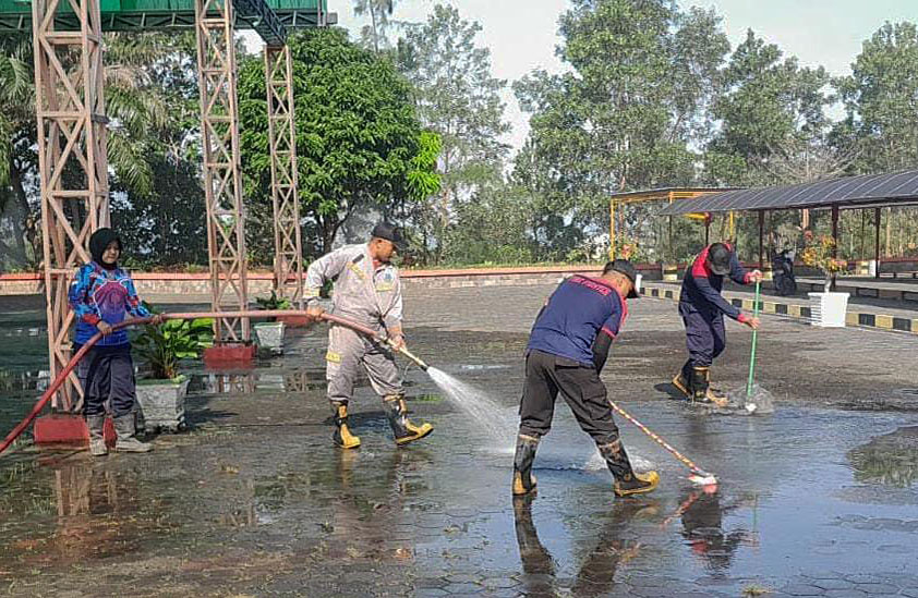 Kepala UPTD Damkar Tanjunguban, Panyodi, menjelaskan bahwa setiap tahun, Damkar Tanjunguban dilibatkan dalam kegiatan pembersihan dan penyemprotan air di area masjid menjelang Ramadan.