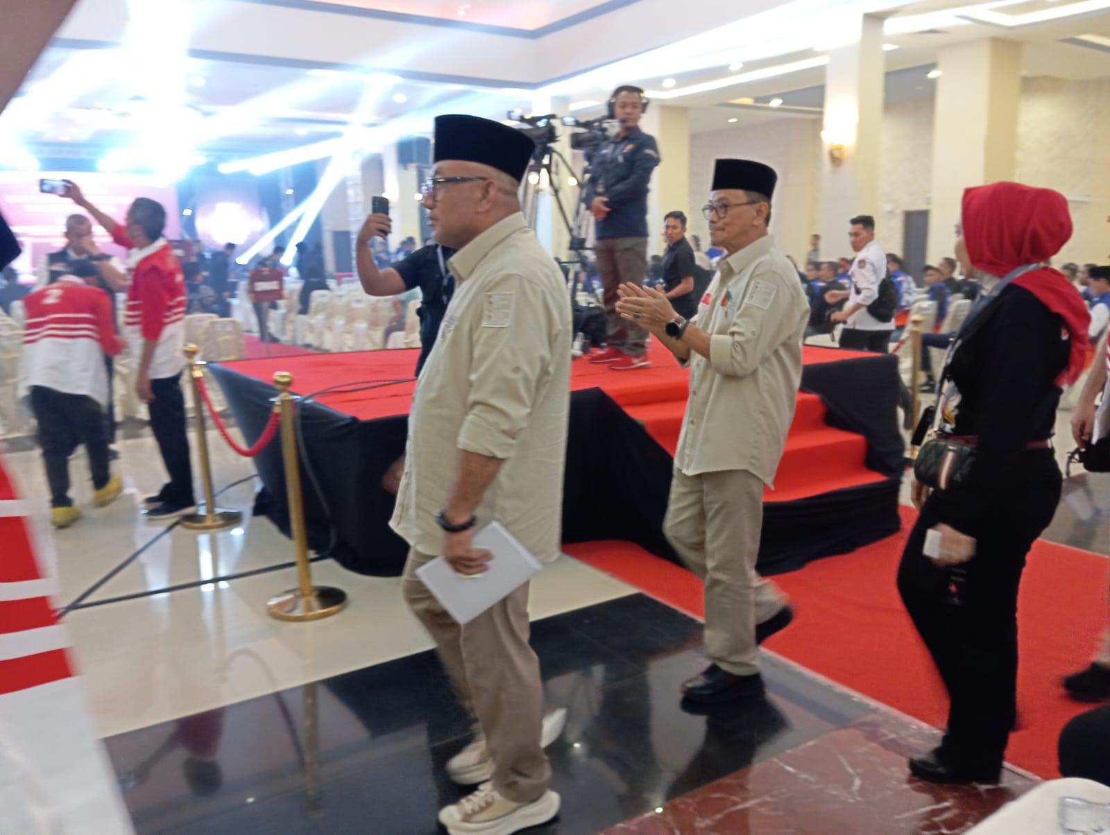 Ratusan warga sudah menanti kedatangan pasangan ini di depan Hotel CK menjelang Debat Kedua Paslon Wali Kota Tanjungpinang, Senin (18/11/2024).