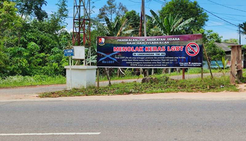 Ulasfakta.co – Masyarakat Jalan Nusantara, Kelurahan Pinang Kencana, Km 12, Kota Tanjungpinang, menyambut positif langkah tegas Lanud Raja Haji Fisabilillah (RHF) dalam menolak perilaku menyimpang Lesbian, Gay, Biseksual, dan Transgender (LGBT). Penolakan ini diwujudkan melalui pemasangan spanduk imbauan di depan kompleks TNI AU.